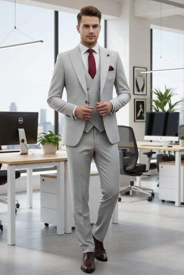 Giovanni Testi 1 Button Peak lapel 3 piece Tuxedo GT1PA+V-1501 Silver