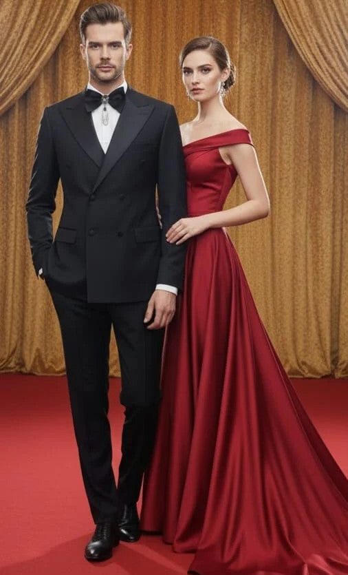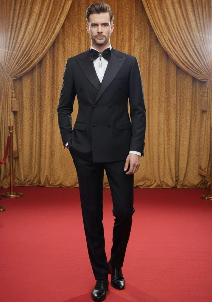 FABIO FABRINNI Slim Tux, 2 Piece Double Breast Tux with 6 Buttons. Peak Lapel and Center Vent.