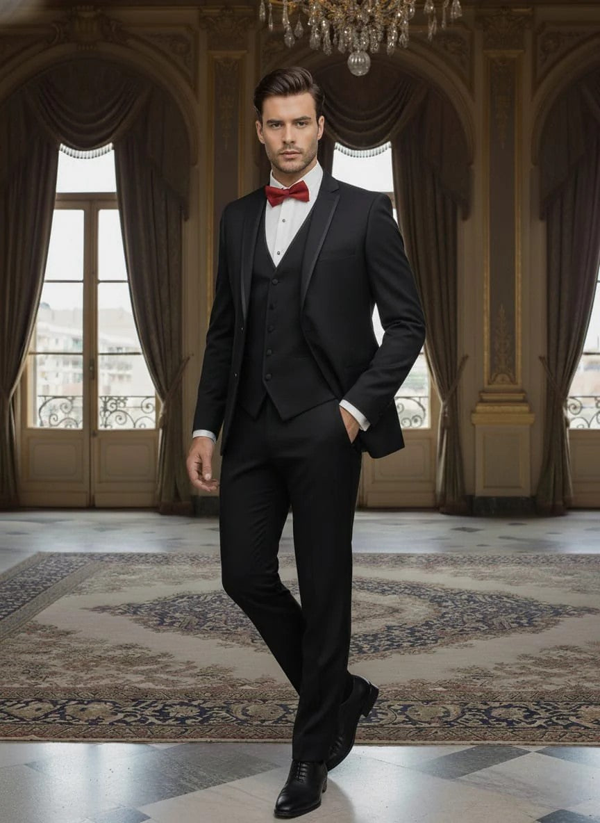 Fabio Fabrinni 3Piece Slim Fit Suit, 2 Buttons, Matching Vest with Satin Taping on Notch Lapel