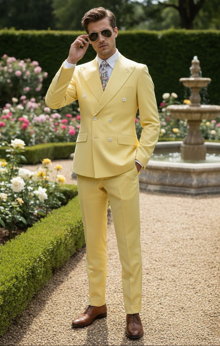 GIOVANNI TESTI , Slim Fit, 2 Piece Double Breast Suit with 6 Buttons. Peak Lapel and Center Vent.