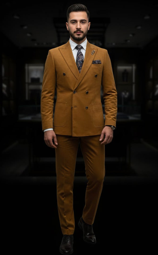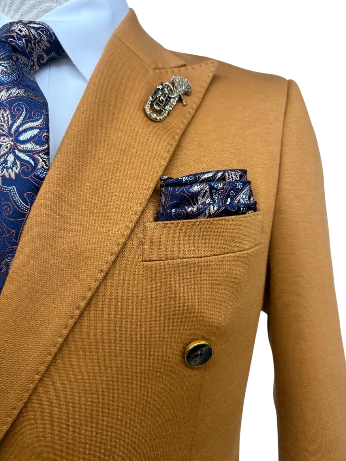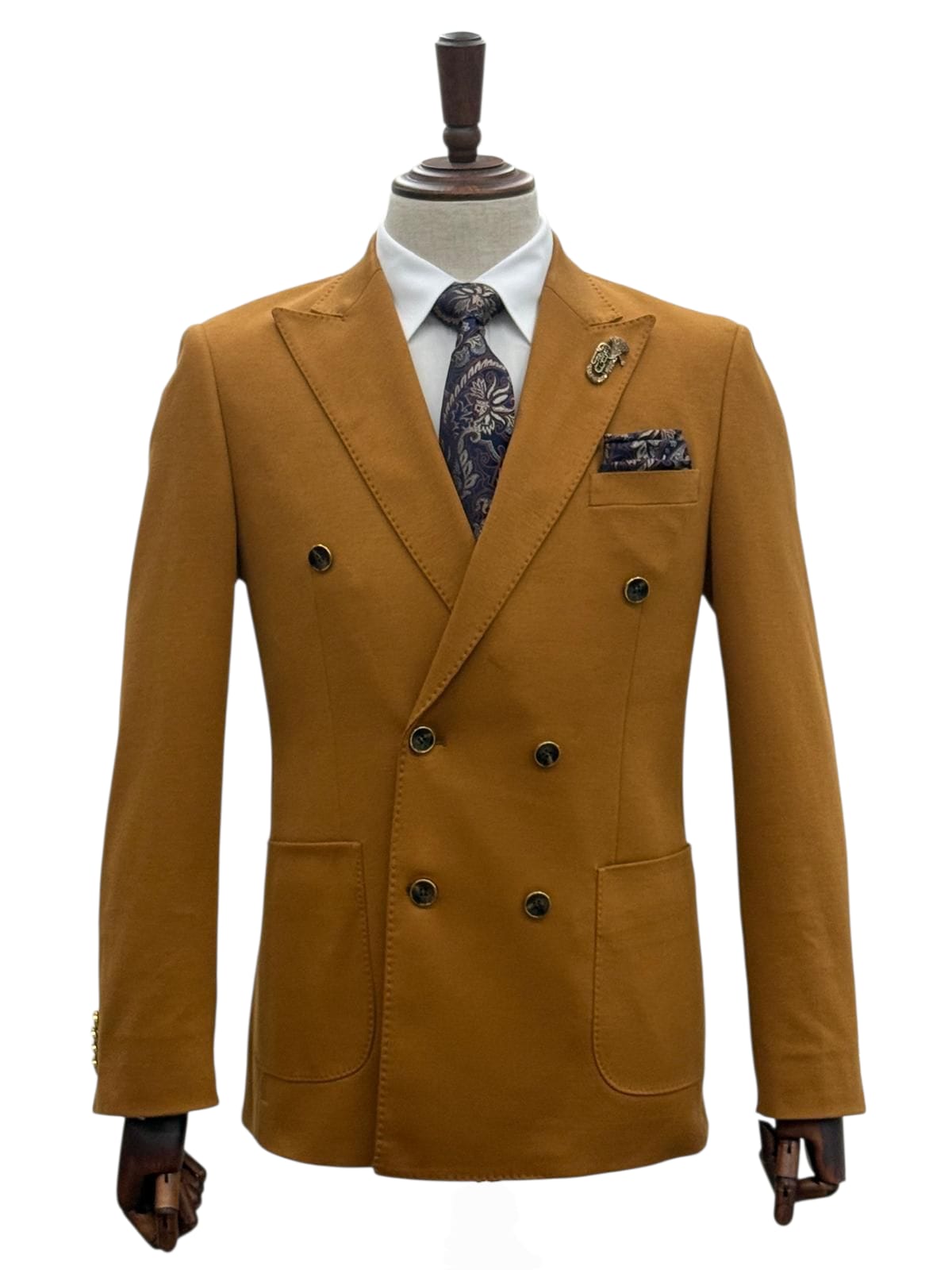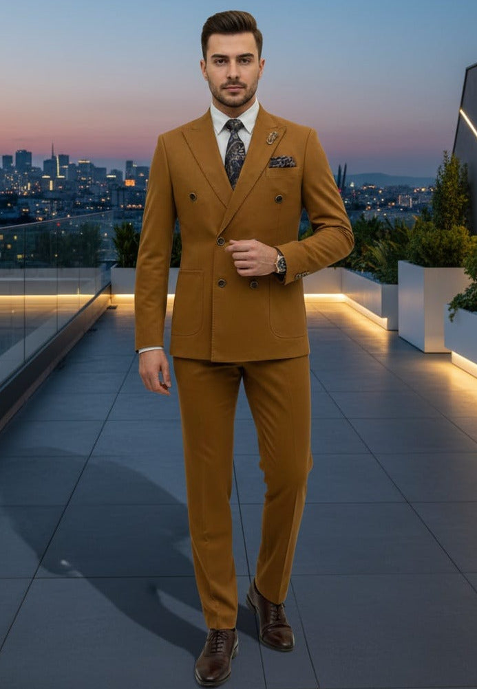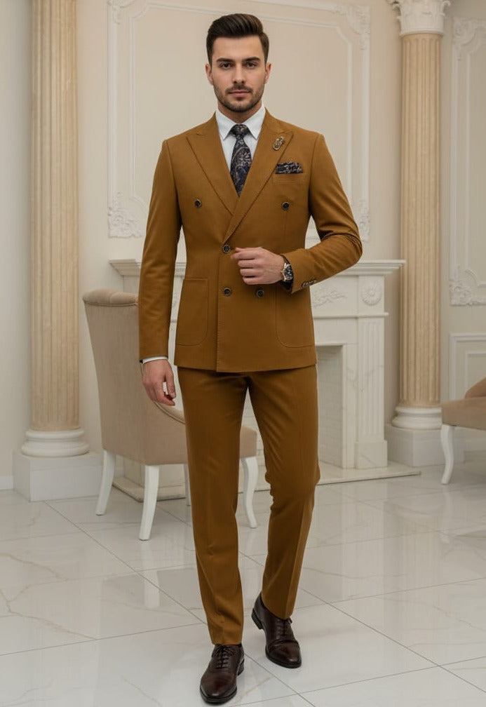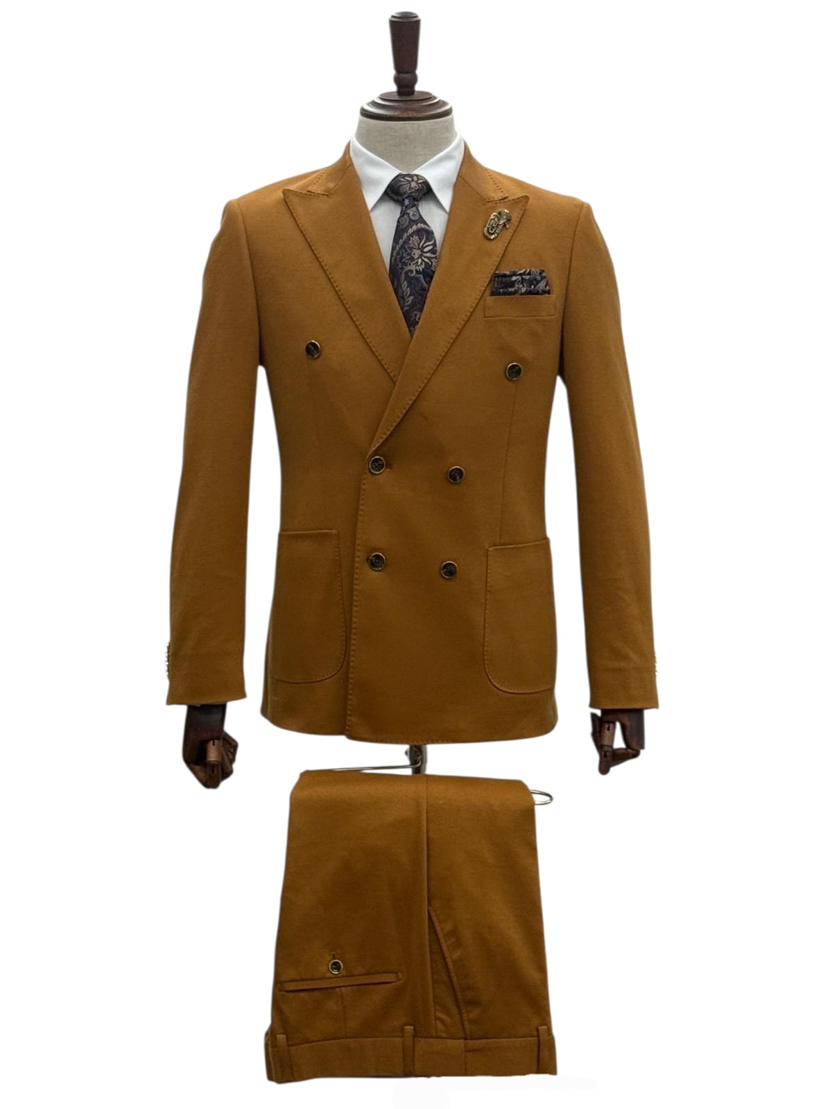GIOVANNI TESTI , Slim Fit, 2 Piece Double Breast Suit with 6 Buttons. Peak Lapel and 2 Side Vents.