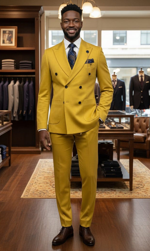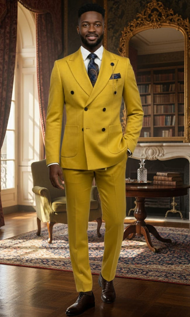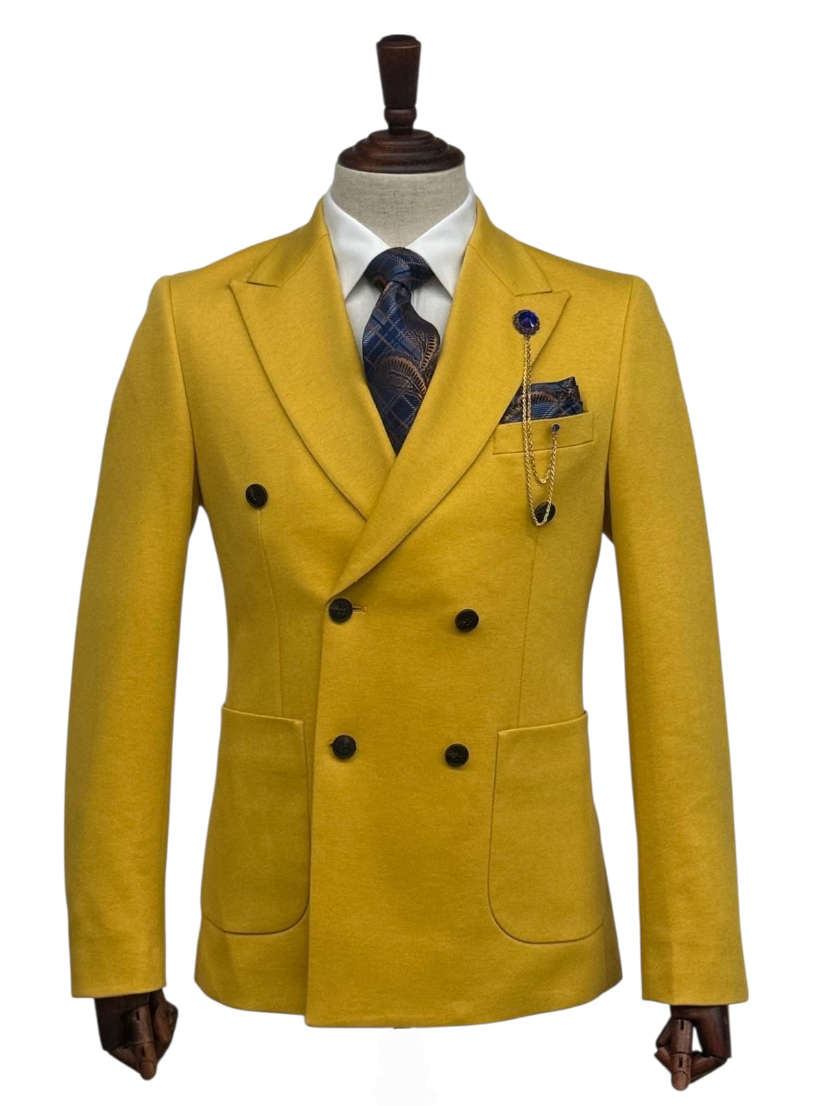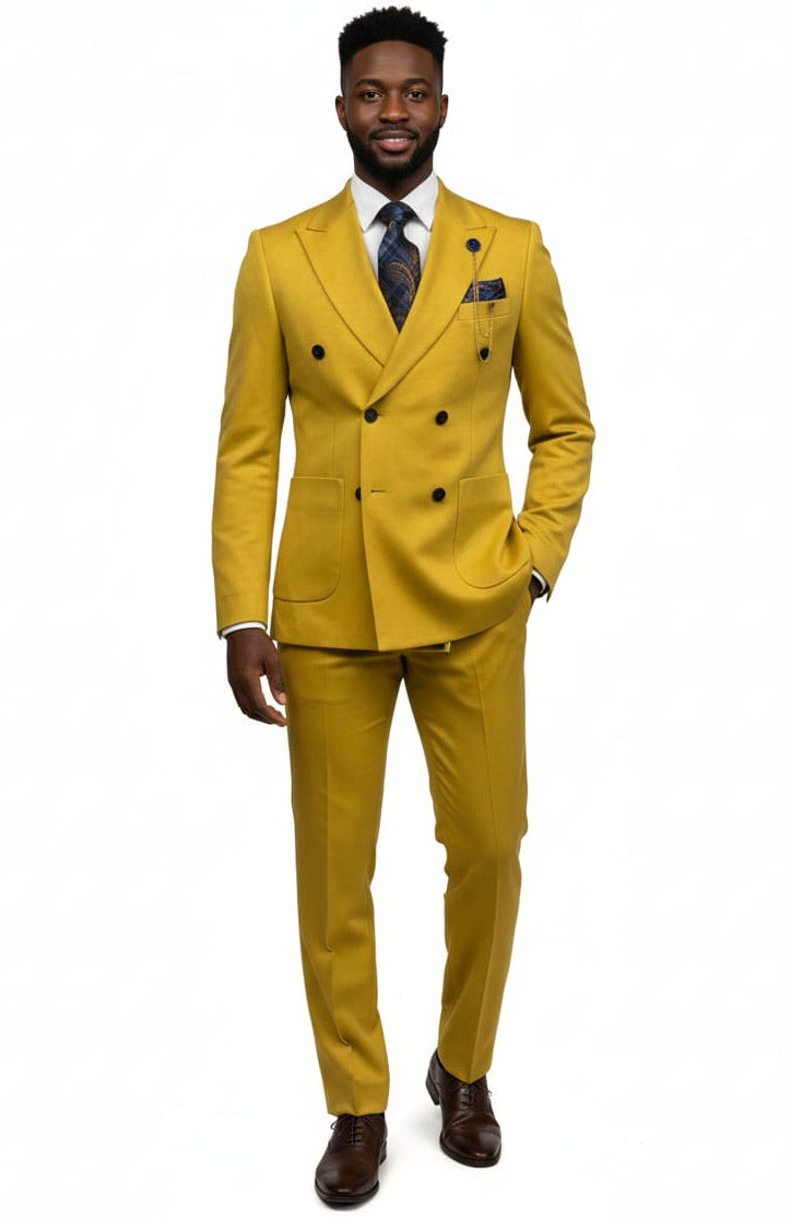 GIOVANNI TESTI , Slim Fit, 2 Piece Double Breast Suit with 6 Buttons. Peak Lapel and 2 Side Vents.