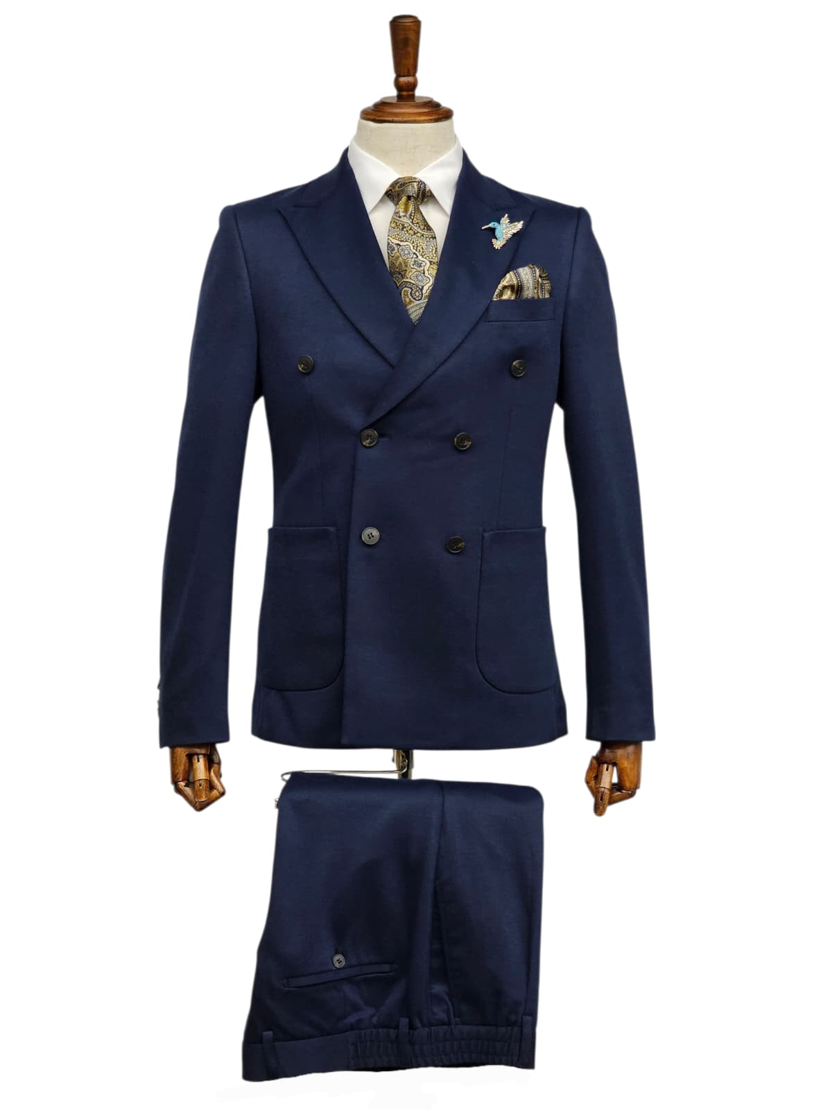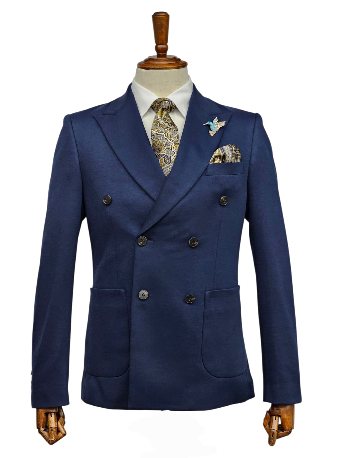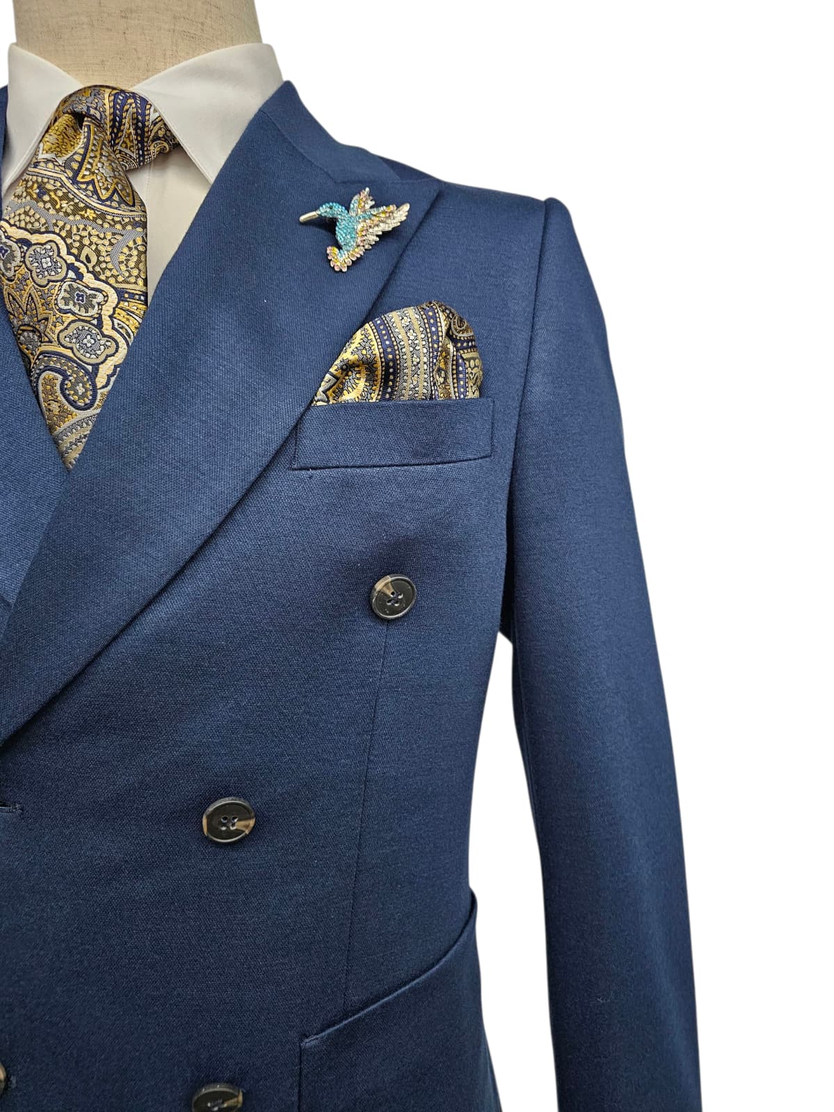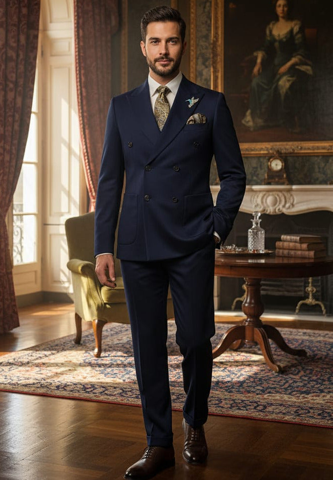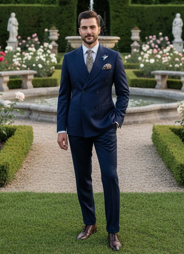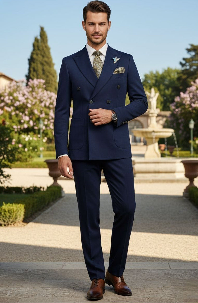 GIOVANNI TESTI , Slim Fit, 2 Piece Double Breast Suit with 6 Buttons. Peak Lapel and 2 Side Vents.