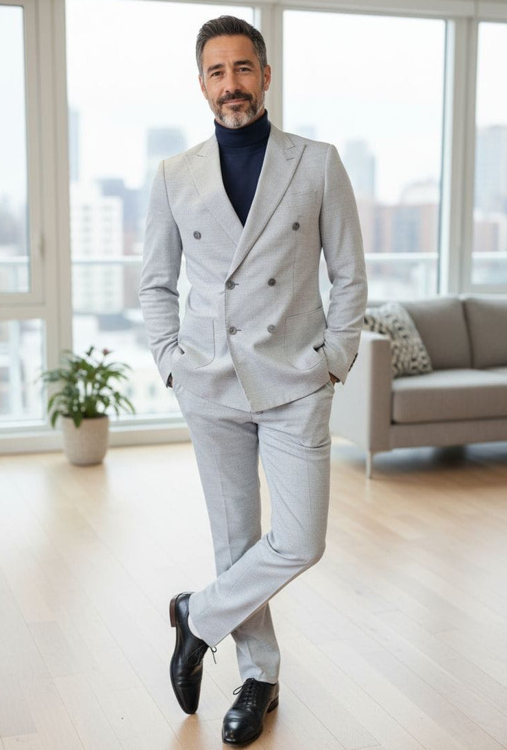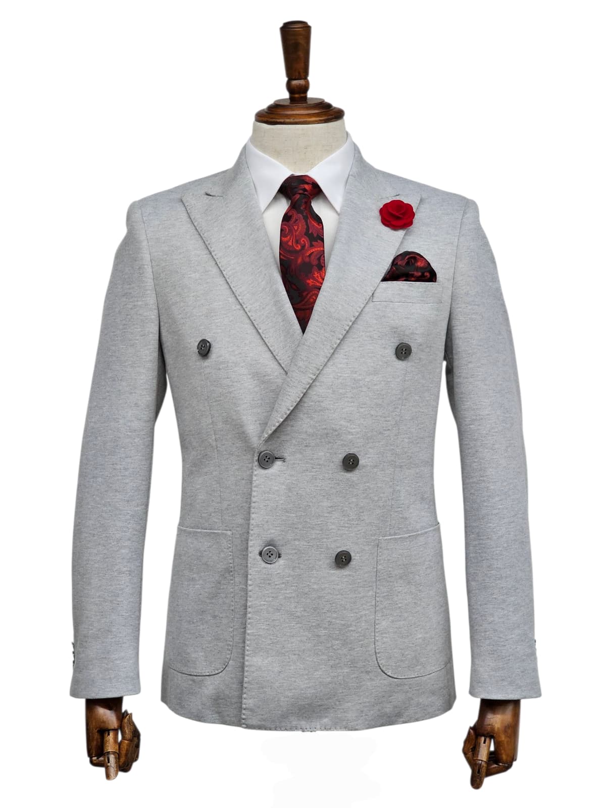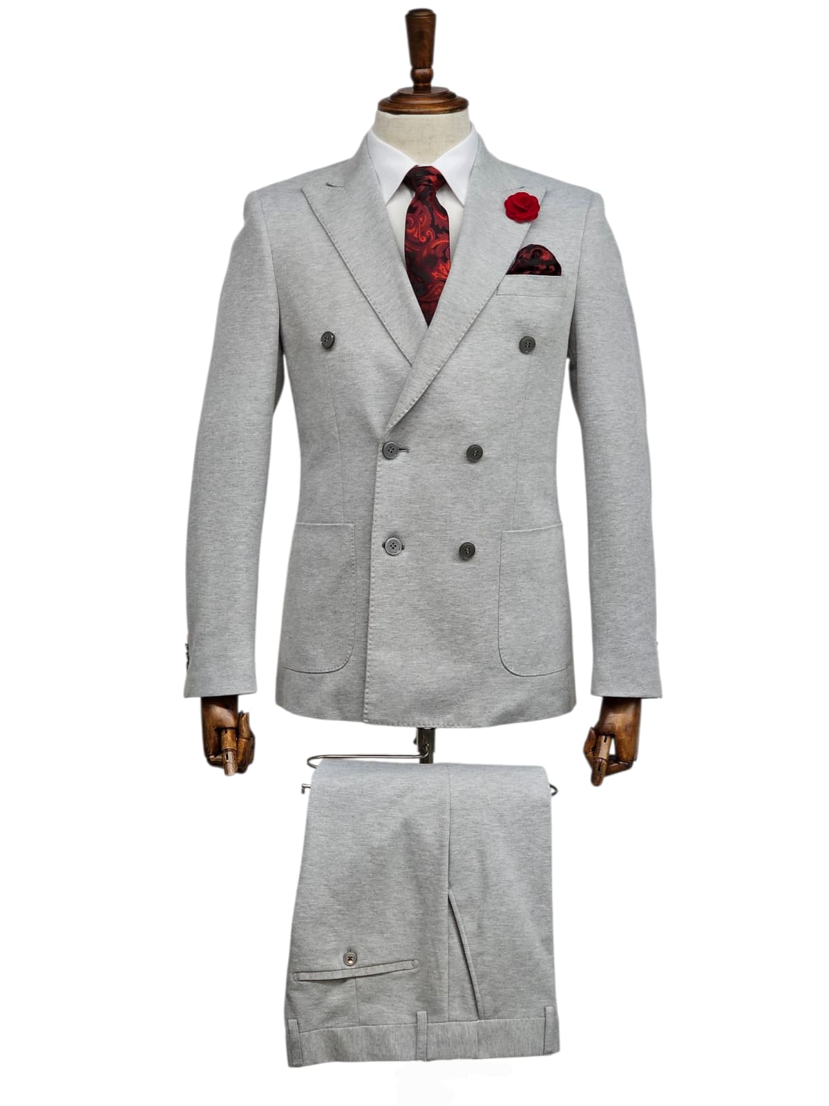 GIOVANNI TESTI , Slim Fit, 2 Piece Double Breast Suit with 6 Buttons. Peak Lapel and 2 Side Vents.