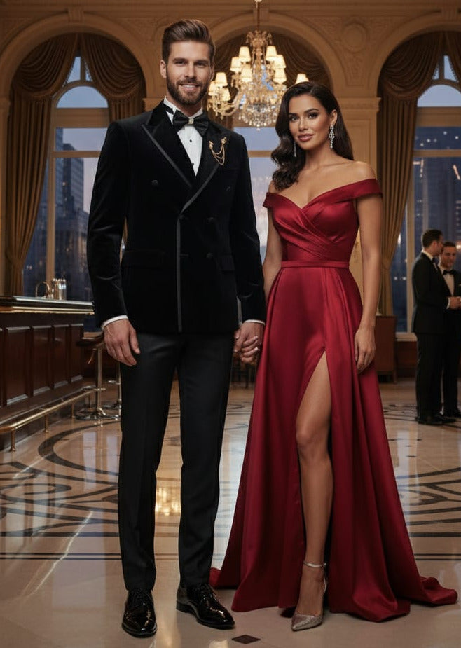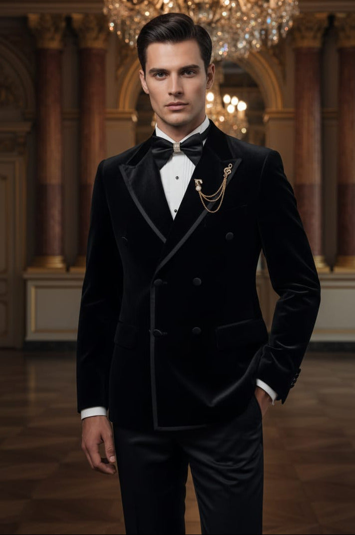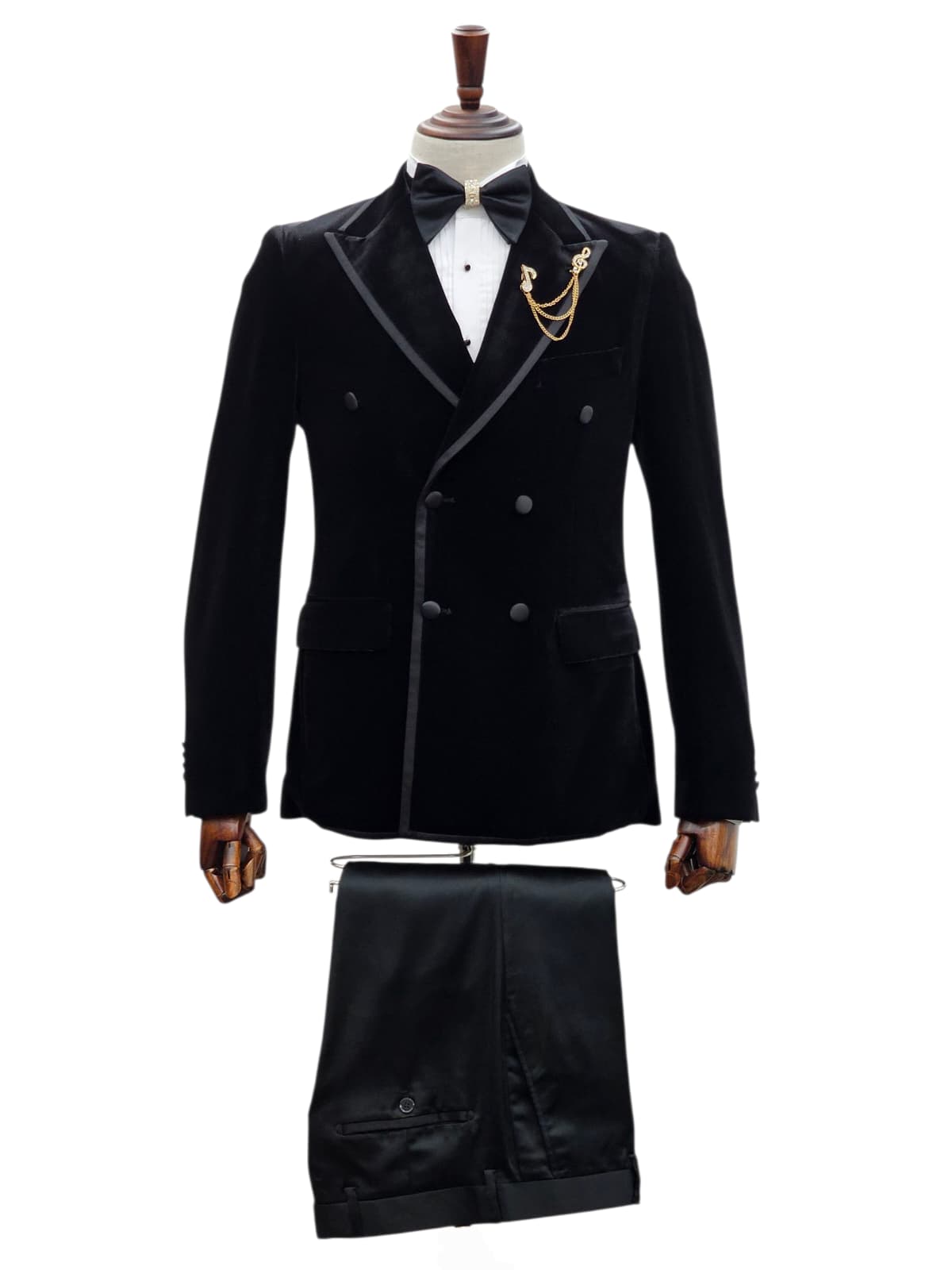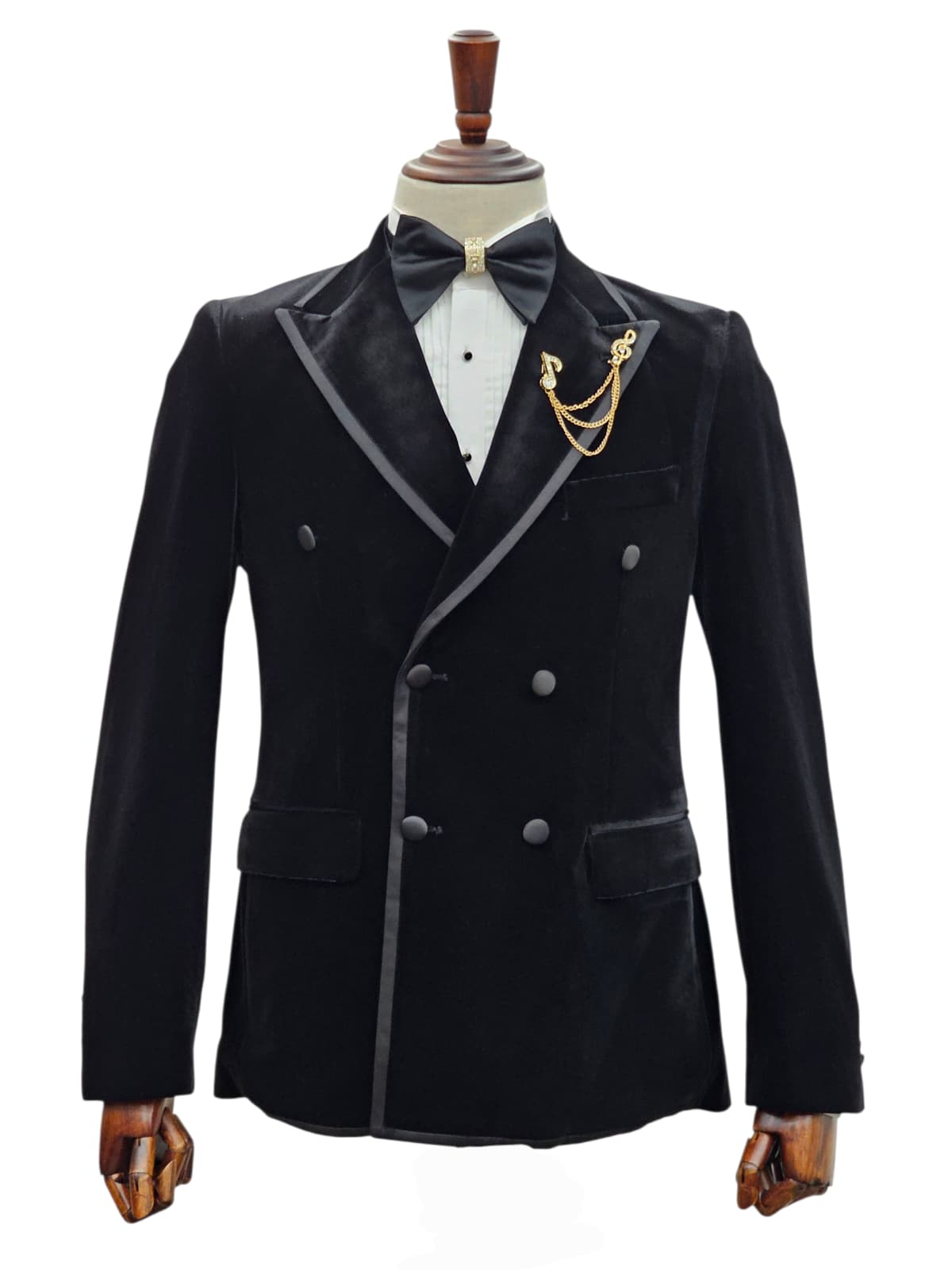 GIOVANNI TESTI Double Breast Velvet Slim Fit Jacket with 6 Buttons, Peak lapel with Black Satin Trim and Side Vents.