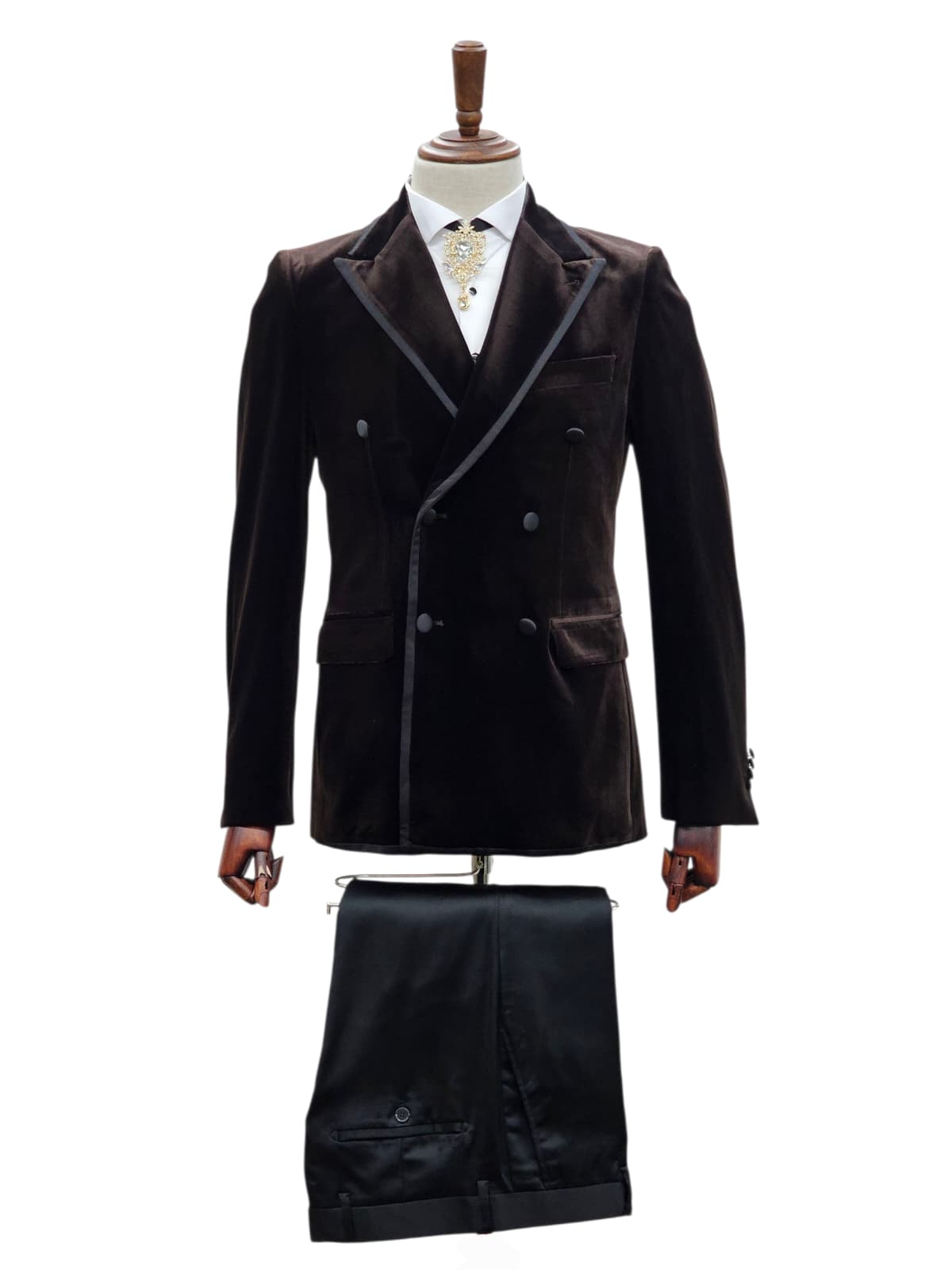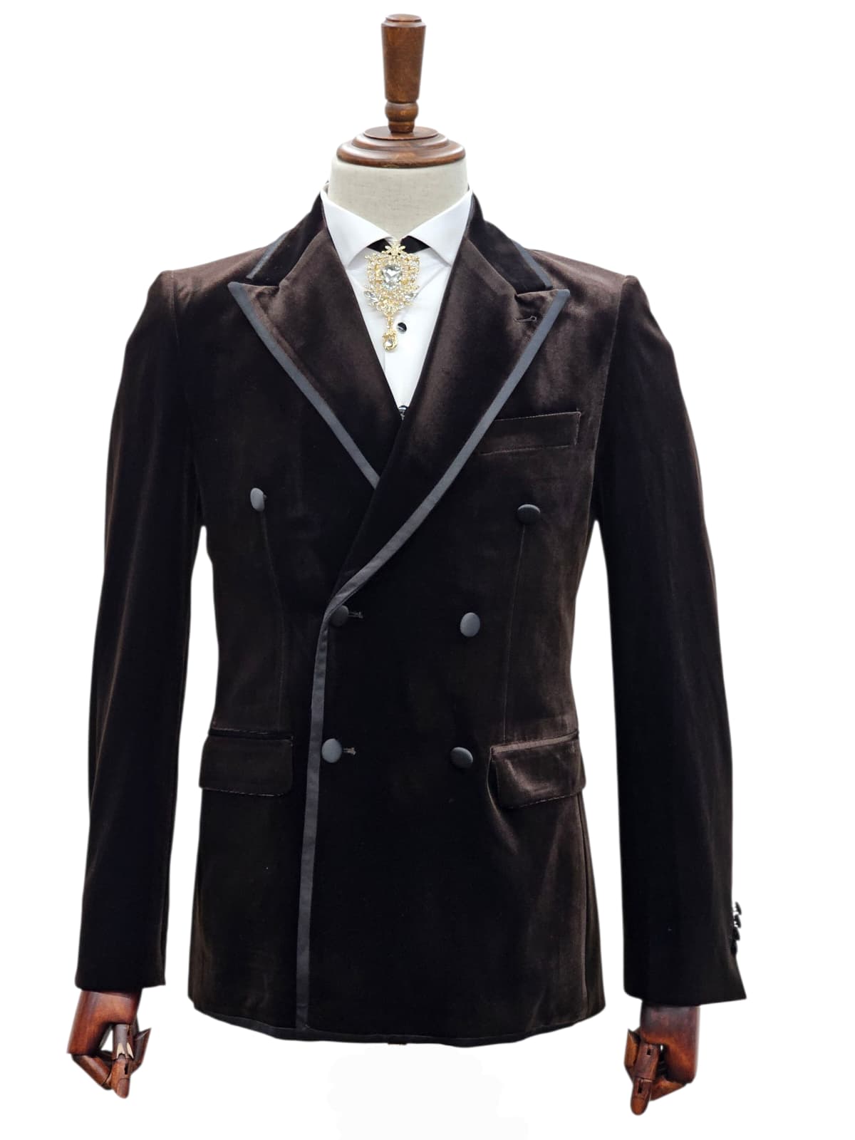 GIOVANNI TESTI Double Breast Velvet Slim Fit Jacket with 6 Buttons, Peak lapel with Black Satin Trim and Side Vents.