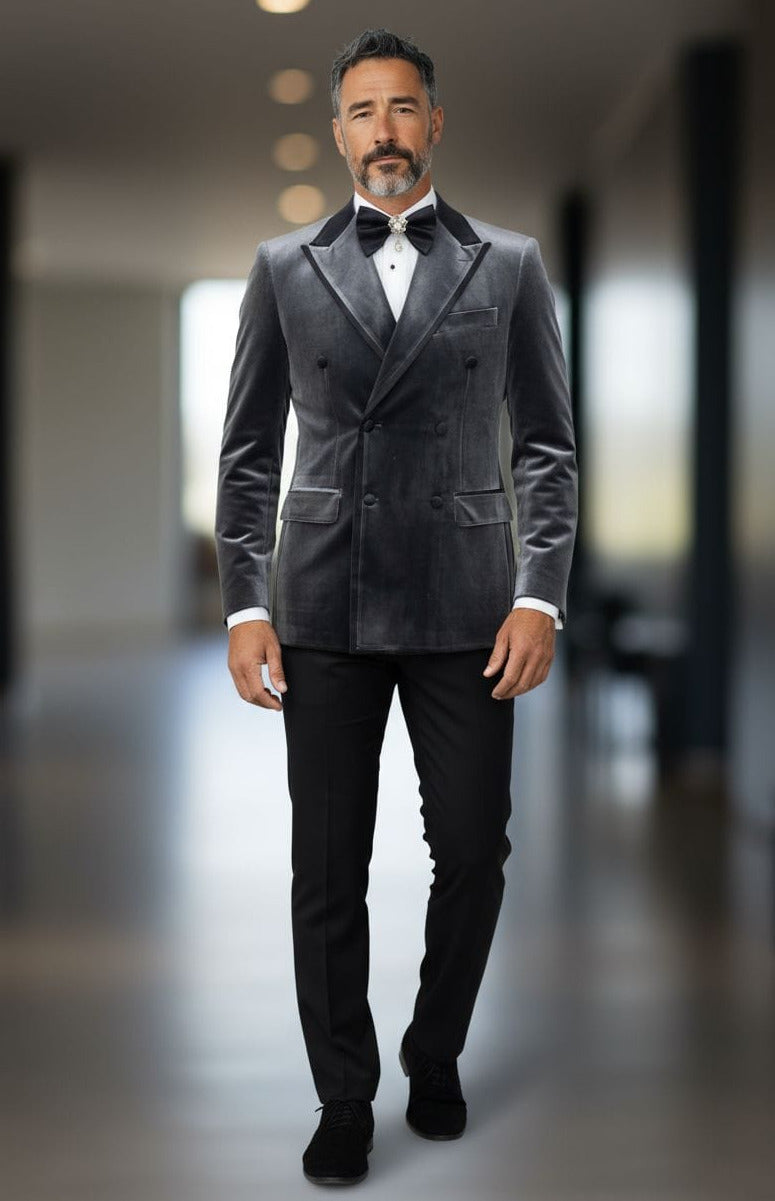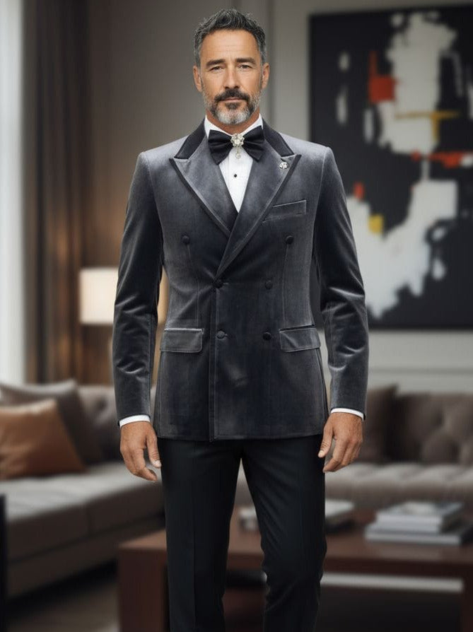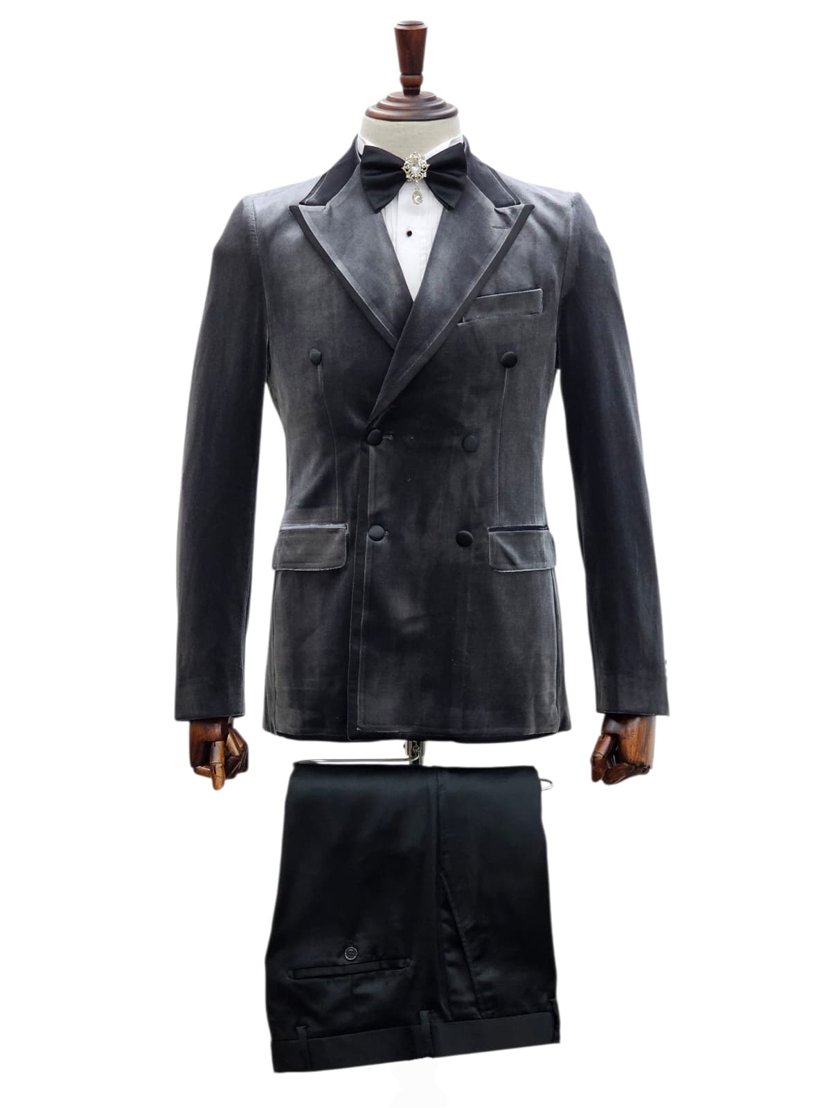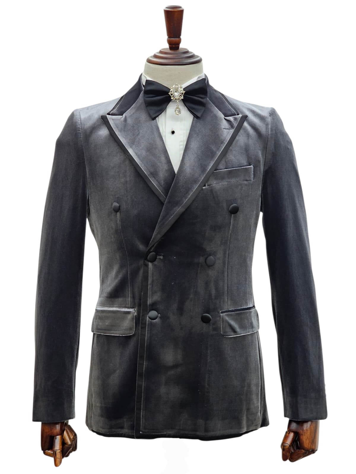 GIOVANNI TESTI Double Breast Velvet Slim Fit Jacket with 6 Buttons, Peak lapel with Black Satin Trim and Side Vents.