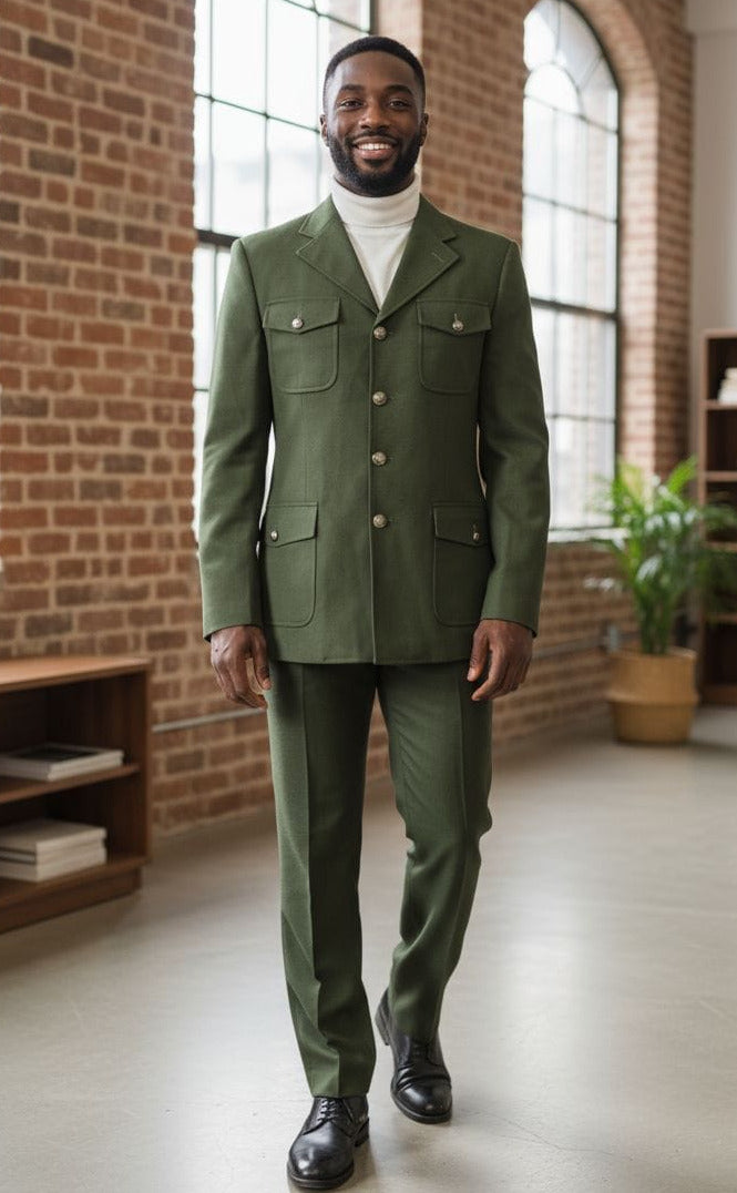 Giovanni Testi 2 piece slim fit suit, 4 Buttons, Notch Lapel, Patch pockets, pocket flaps with buttons.