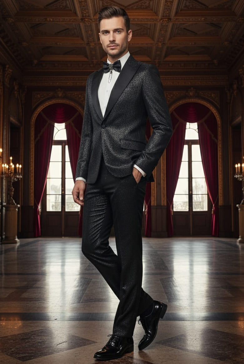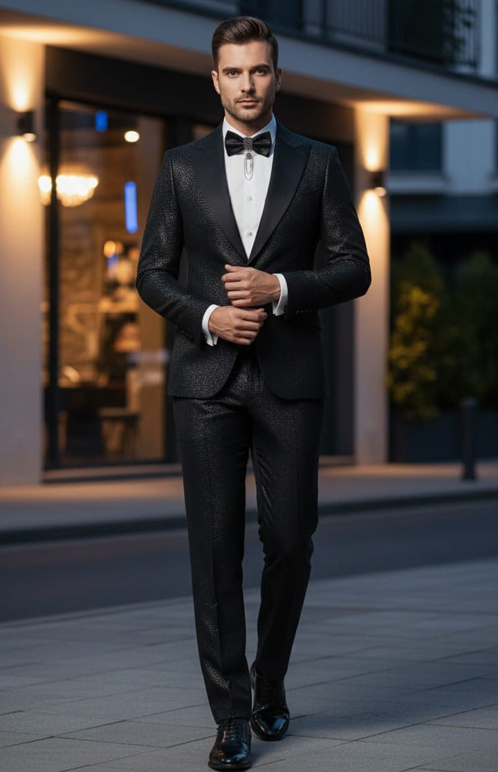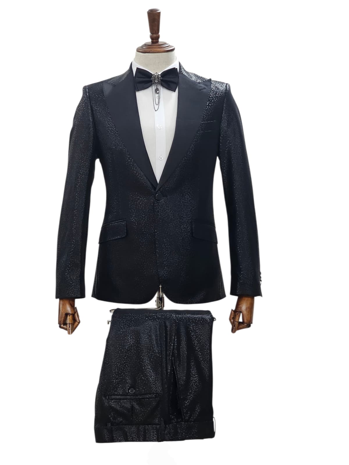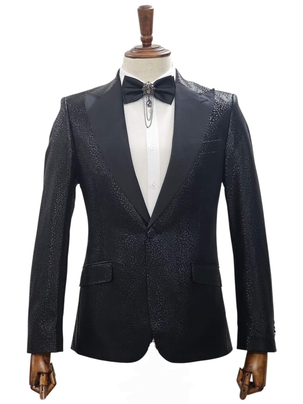 GIOVANNI TESTI Slim Fit Tuxedo, Scales pattern, 1 Button, Satin Peak Lapel.