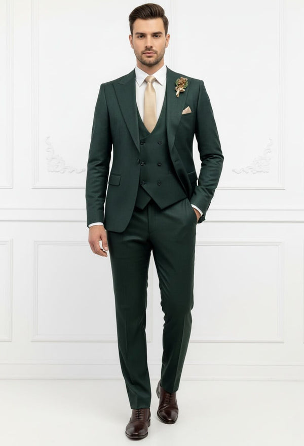 Fabio Fabrinni 2 Button Forest Green Shawl Lapel 3 Piece Slim Suit FF2SSX+V-1230 FG