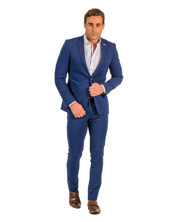 Giovanni Testi 1 Button Peak Lapel Stretch Travel Suit GTRVL1P-8033 BLUE/RUST