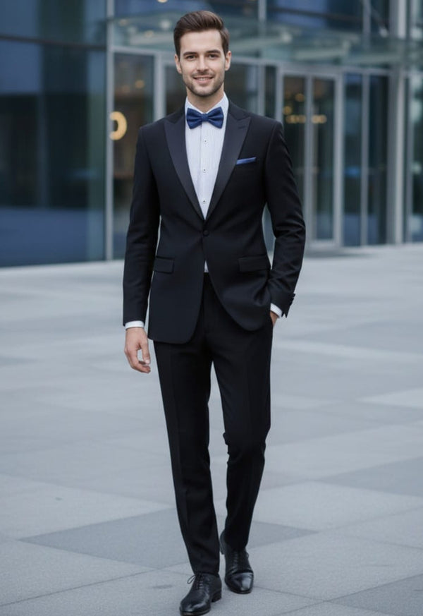 1 Button Peak Lapel Slim Fit Black Tuxedo FF1PX+V-1230