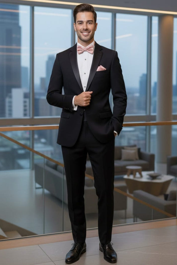 1 Button Peak Lapel Slim Fit Black Tuxedo FFTX1SP-4030