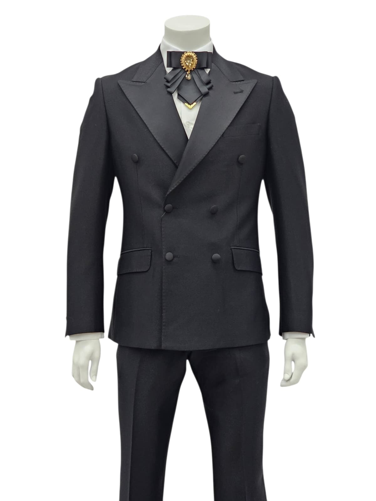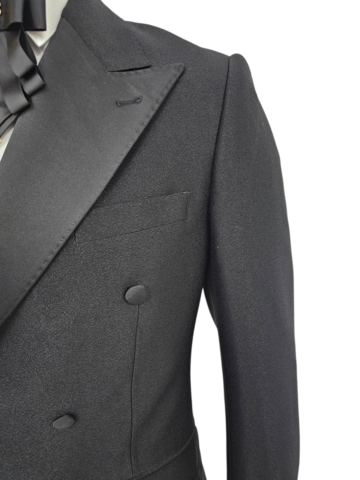 GIOVANNI TESTI , Slim Fit, 2 Piece Double Breast Suit with 6 Buttons. Satin Peak Lapel and Center Vent.